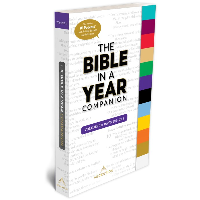 The Bible in a Year Companion guide takes Catholics through the award-winning podcast The Bible in a Year (with Fr. Mike Schmitz)™ including daily summaries, transcripts of Fr. Mike’s daily prayers, and extra content for each episode.