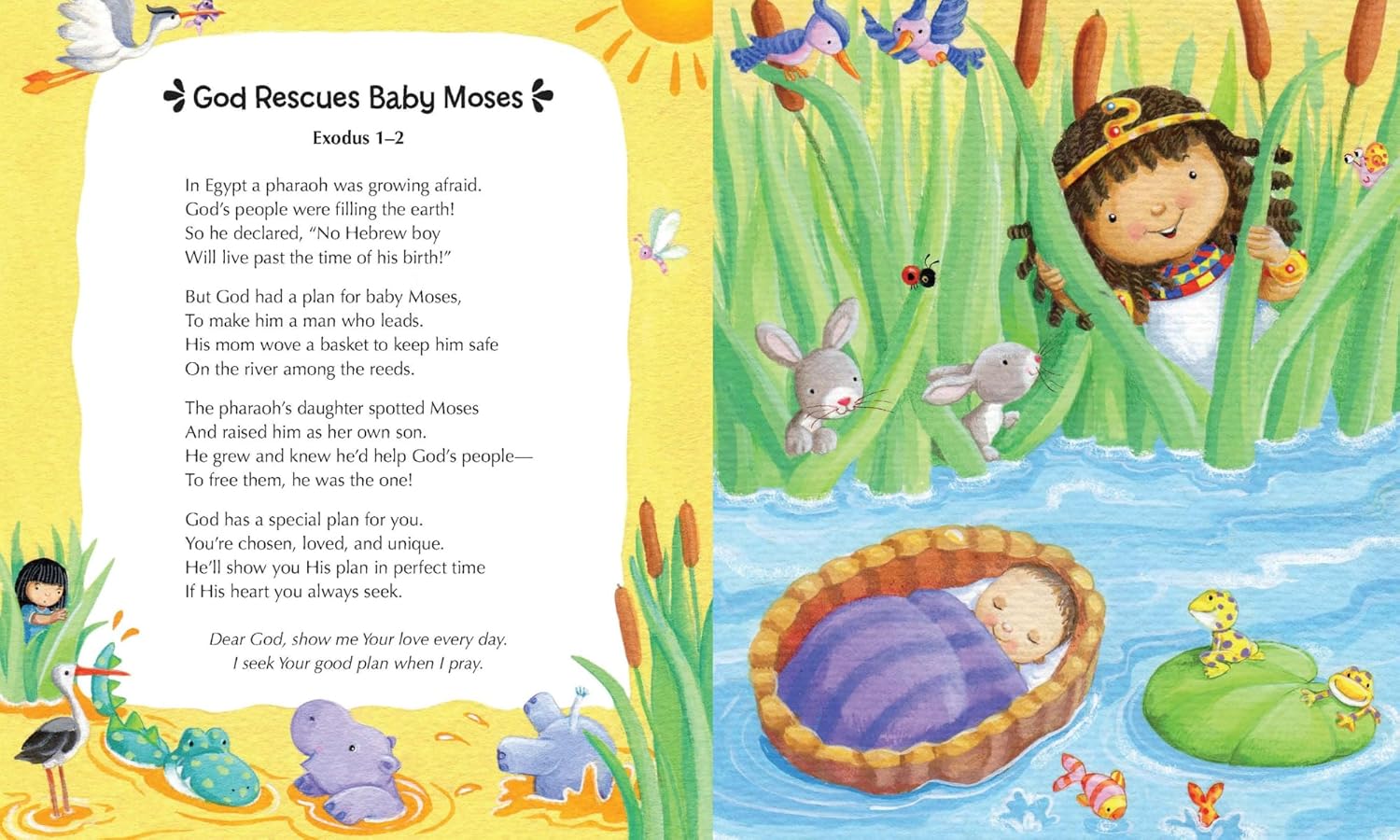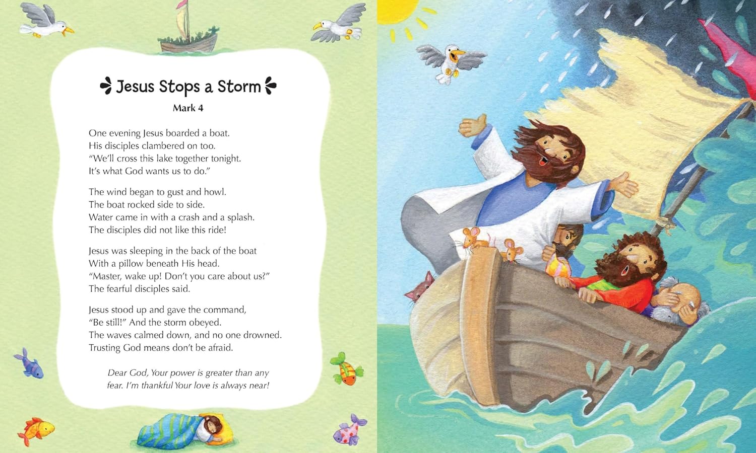 - 12 favorite Bible stories, including creation, Noah's ark, Daniel and the lions' den, and Jesus' birth and resurrection;