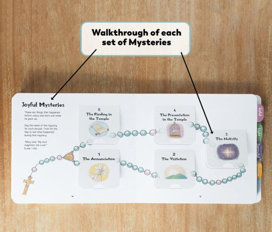 Designed with young Catholics in mind, this book uses lift-the-flaps, turning wheels, and beautiful visuals to make learning to pray the Rosary joyful, memorable, and engaging.